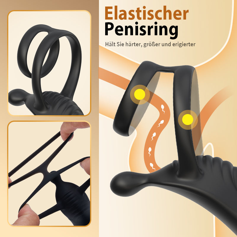 1. Zwei leistungsstarke Motoren: Teleskopmodus mit 7 Frequenzen und 10 Vibrationsmodi. 2. 4-in-1-Stimulation: P-Punkt, Perineum, Penis, Hoden.