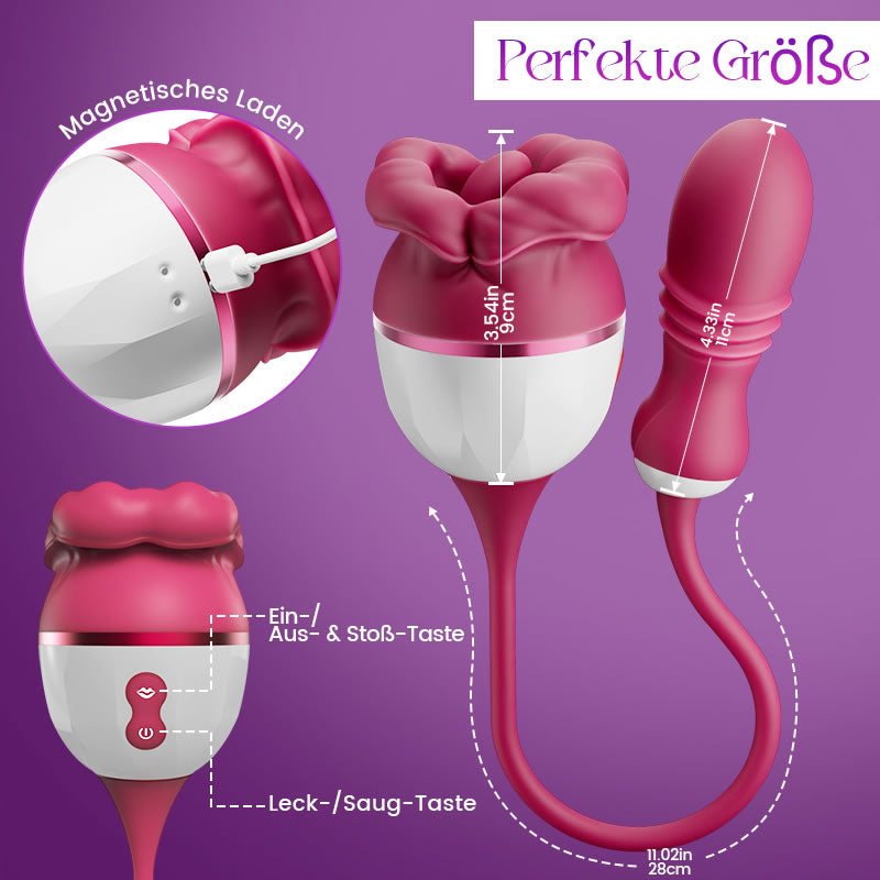 - Erleben Sie 4-in-1-Vergnügen: Lecken, Stoßen, Saugen und Vibration